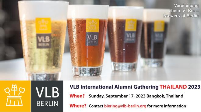 A "VLB international Alumni and Members Gathering" hosted by the Vereinigung ehem. VLBer – Brewers of Berlin will be held in Bangkok, Thailand, on Sunday, September 17, 2023. In order get the information about the venue and the exact time, please contact Jan Biering (see below).